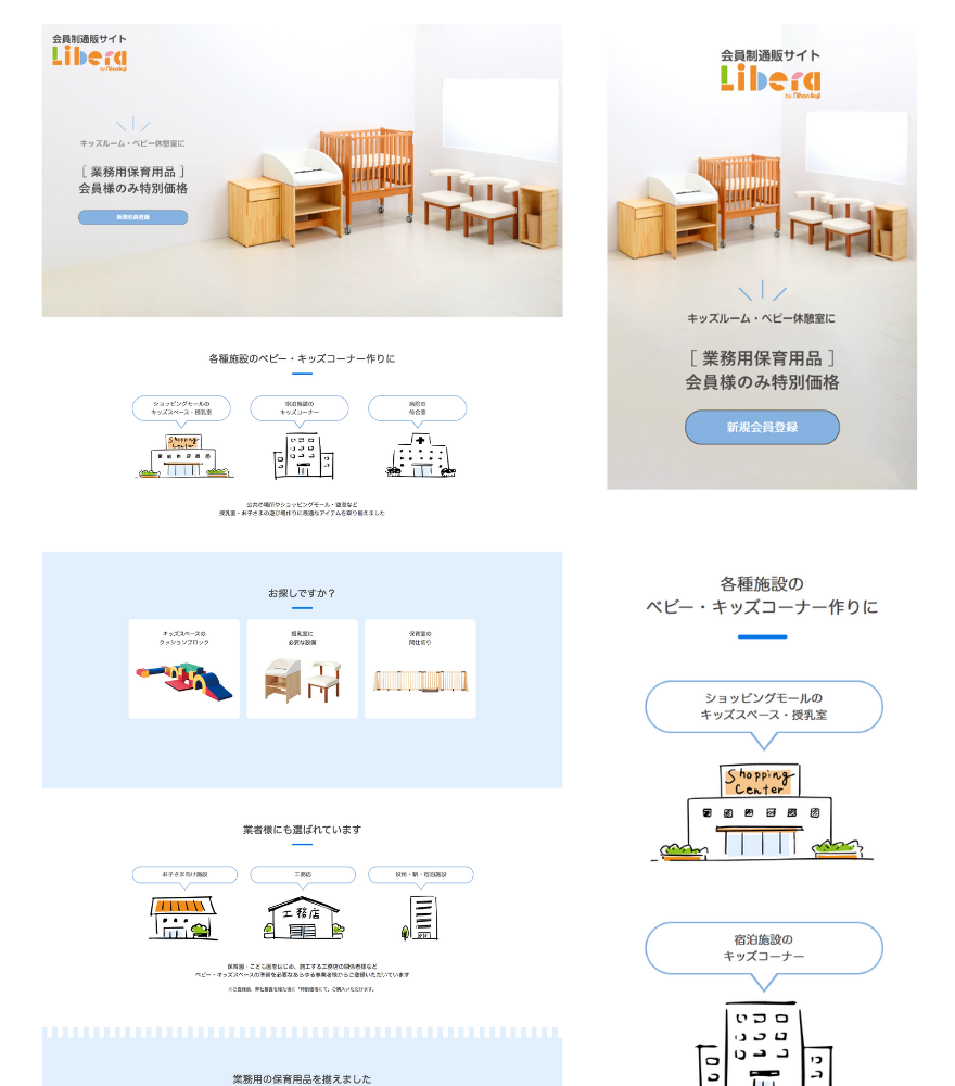 toB向けのLPですが、保育用品のため、堅い印象になりすぎないように作成。